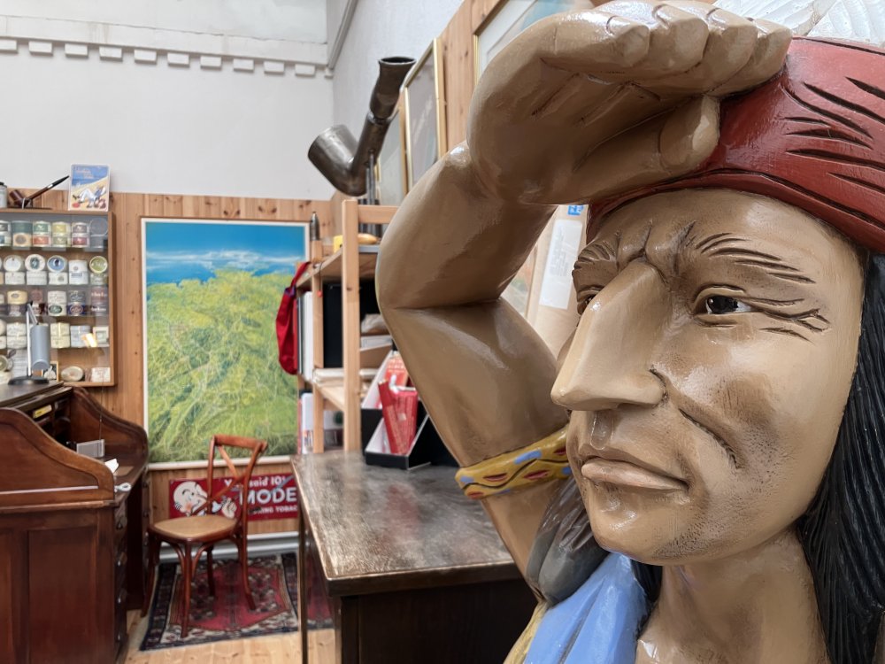 Nej, billedet af indianeren er ikke en udklædt beboer fra Klosterbo, men en del af de mange udstillinger, som Industrimuseet i Horsens byder på